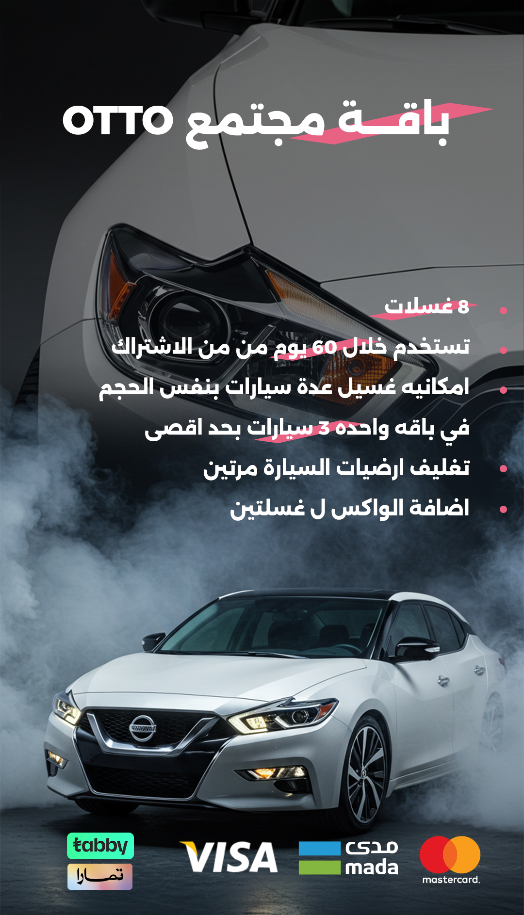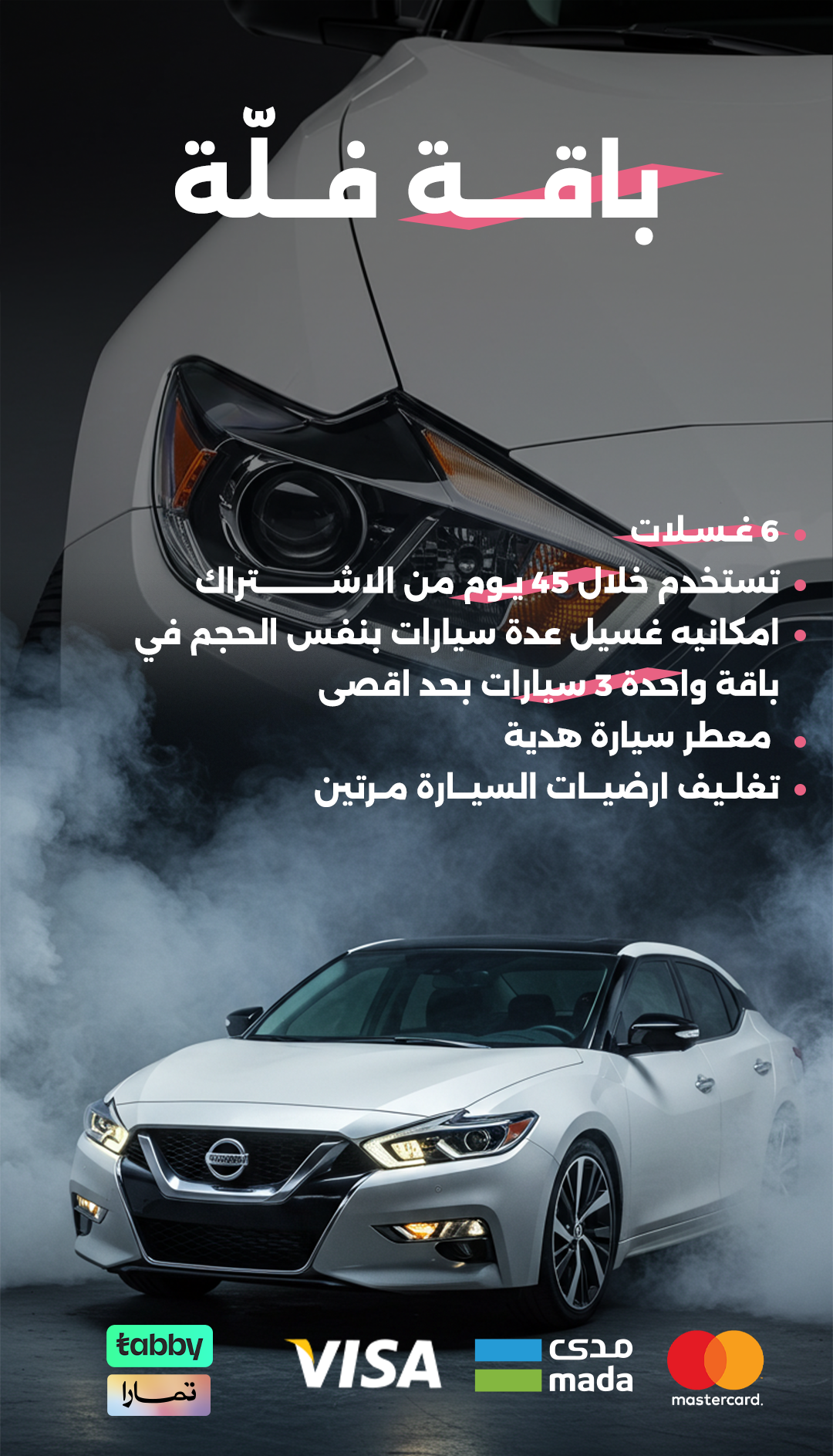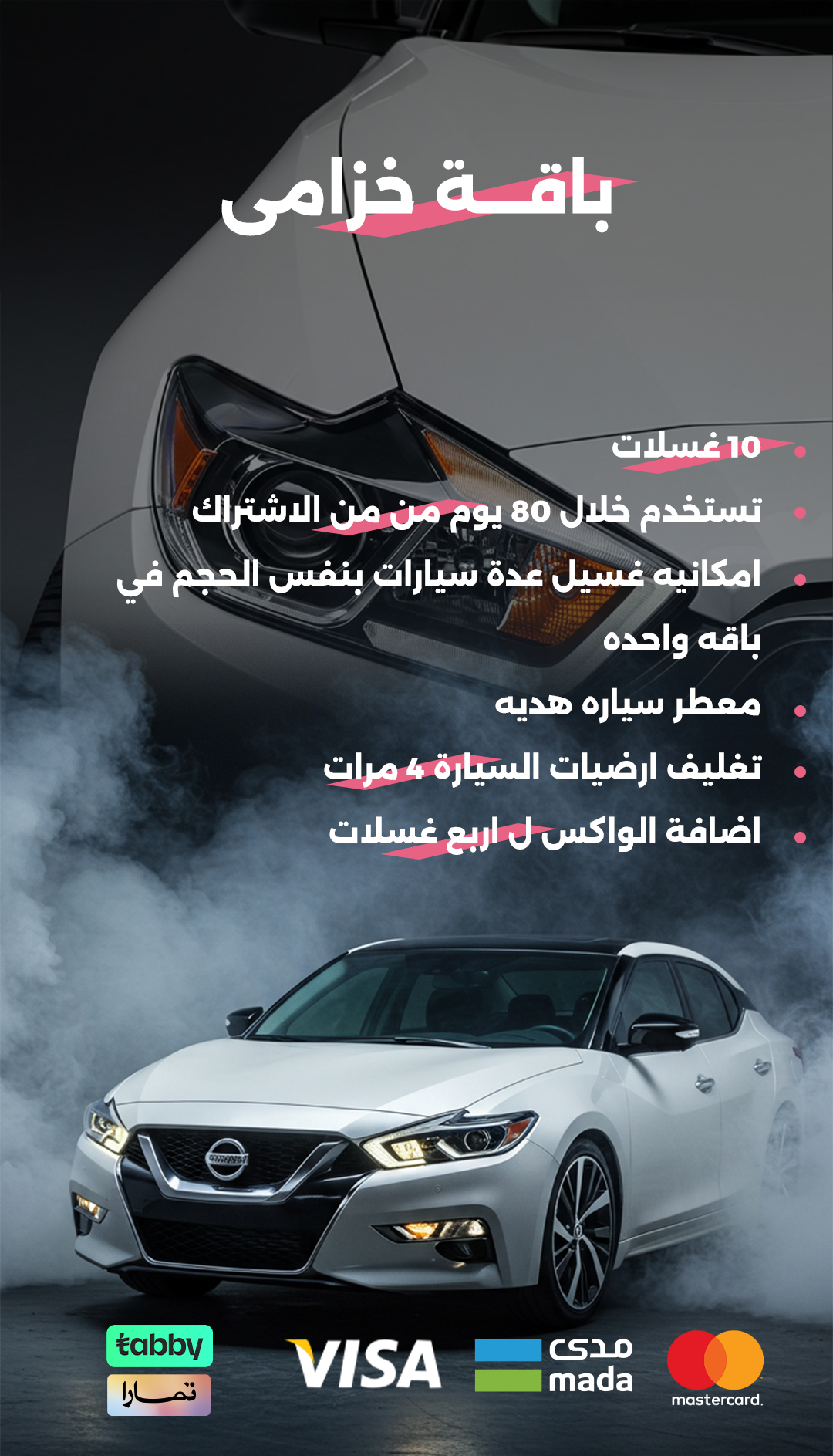 فرع الخــــــــــرج ســـيارة ســـيدان 140ريال بدل من 180 ريال 90ريال بدل من 120 ريال 190ريال بدل من 240 ريال 240 ريال بدل من 300 ريال لماذا نحن؟ خدمات احترافية فريقنا مدرب على تقديم أعلى معايير الجودة في كل خدمة سهولة وراحة اختر الباقة التي تناسبك، واستمتع بمتابعة سير الخدمة بكل سهولة تقنيات متقدمة نستخدم أحدث التقنيات لضمان بقاء سيارتك في أفضل حالاتها