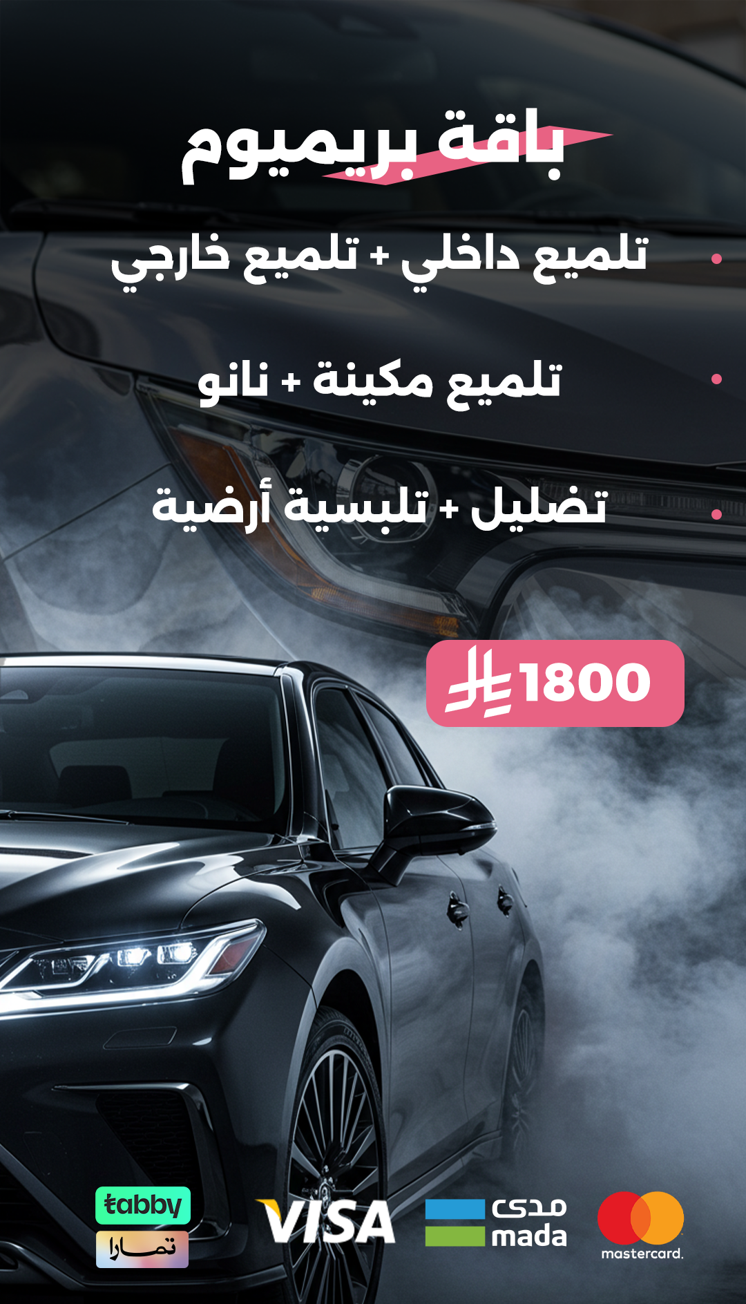 فرع الخــــــــــرج ( باقات التلميع ) سيـــارة صغيـــرة 290ريال بدل من 360 ريال 180ريال بدل من 200 ريال 380ريال بدل من 480 ريال 490 ريال بدل من 700 ريال لماذا نحن؟ خدمات احترافية فريقنا مدرب على تقديم أعلى معايير الجودة في كل خدمة سهولة وراحة اختر الباقة التي تناسبك، واستمتع بمتابعة سير الخدمة بكل سهولة تقنيات متقدمة نستخدم أحدث التقنيات لضمان بقاء سيارتك في أفضل حالاتها